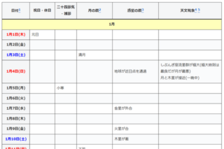 2026年の天文現象と暦を表にまとめました。天文現象としては、主に肉眼で見ることのできる現象を取り上げています。